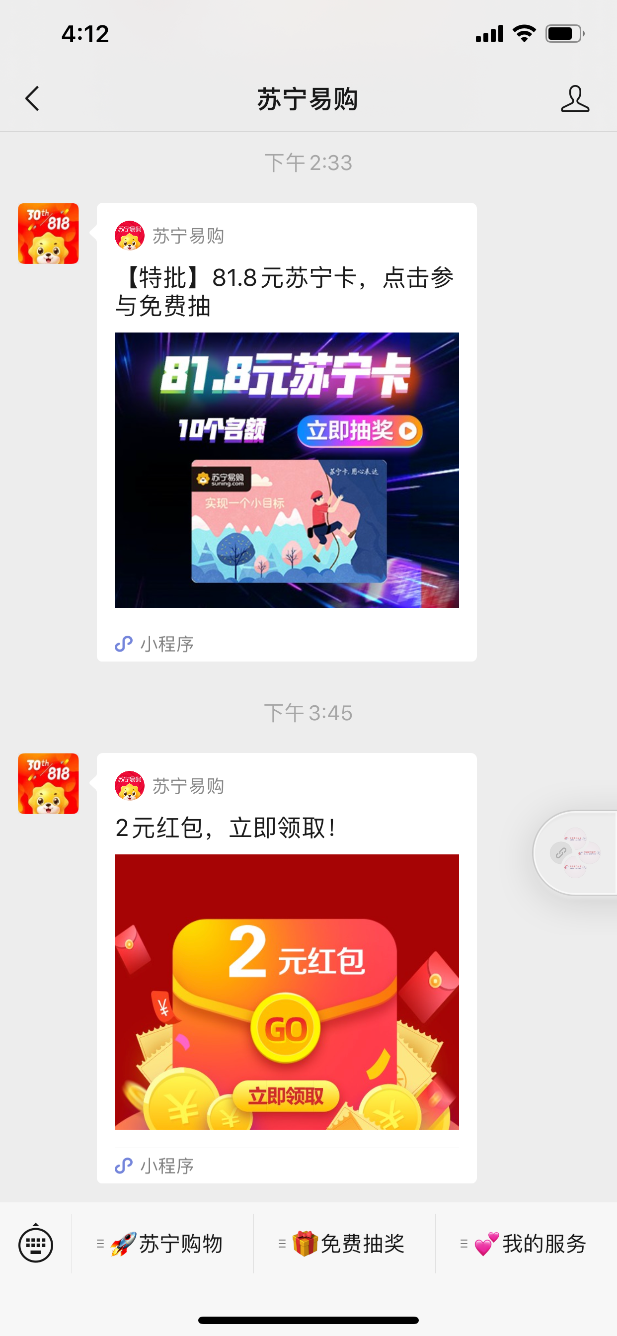 已知的解决方案是用模板消息触达用户,然后进入小程序,今天看到苏宁易购可以一直给用户发送小程序卡片,请问这个是怎么实现的?