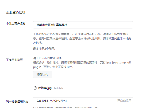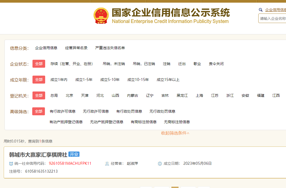 个体工商户名称:韩城市大赢家汇享棋牌社