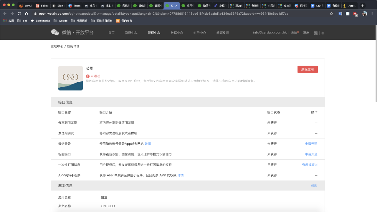 你好,这边查不到你提供的帐号,请确认下帐号是否有误。另外,提供一下应用审核被拒的截图。