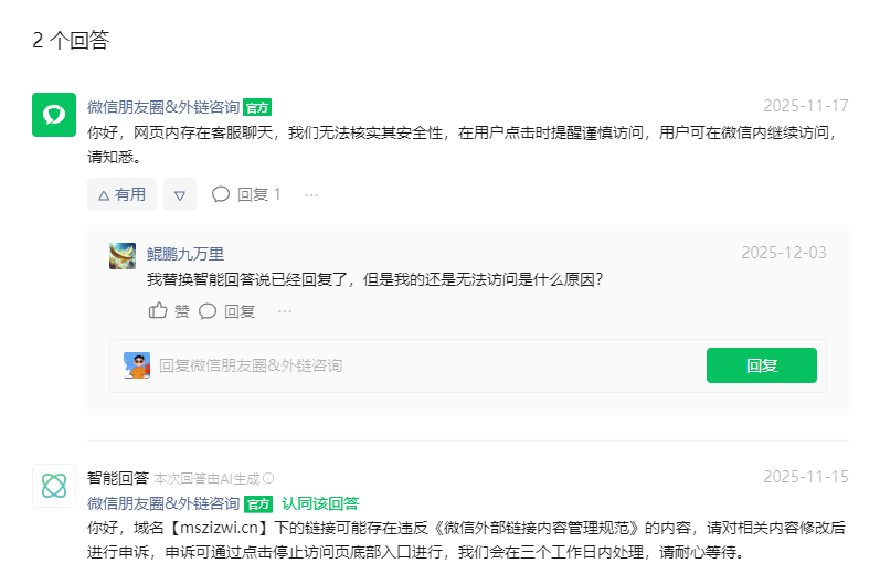 上次申请的链接:https://developers.weixin.qq.com/community/develop/doc/00000e6332419093ab34aeeb466400?highLine=mszizwi.cn