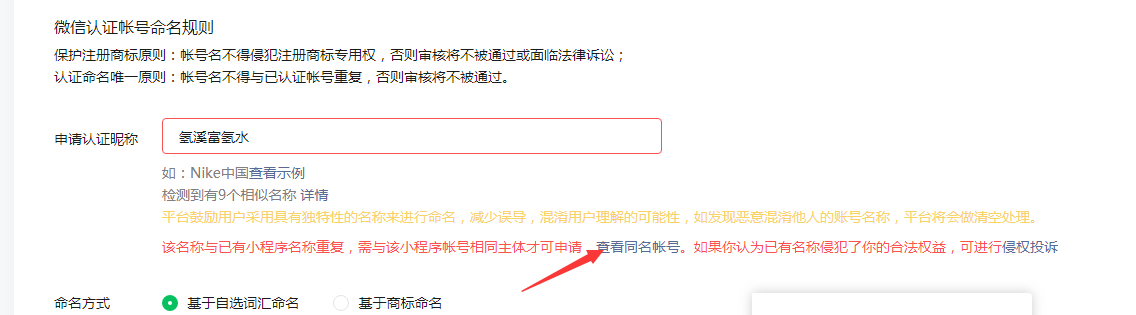 我公司已经认证了公众号:主页环保,现申请同名小程序号,注册时就是显示名称已占用,但查看占用的,就是我公司的公众号。我想问问这是为什么,同一公司,应该算同一主体下吧。