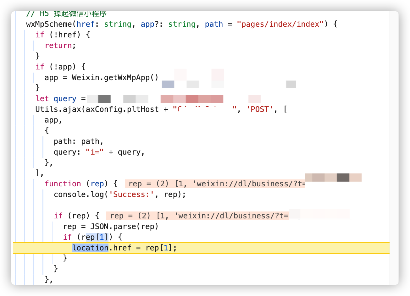 // 改为这个url后试试: let appId = 'wxa7b0b022472e55e6' let path = 'pages/index/index' let query = 'id=123456' location.href = `weixin://dl/business/?appid=${appId}&path=${path}&query=${encodeURIComponent(query)}&env_version=develop`