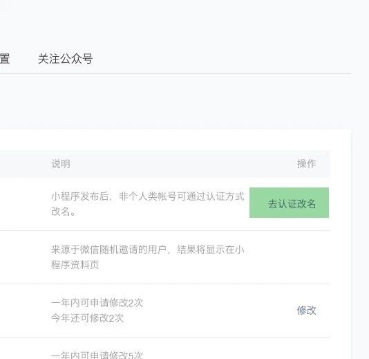 小程序在发布前,名称设置成功以后有2次修改名称机会,2次机会用完,必须先发布后,才可通过微信认证(300元认证费)进行改名。
