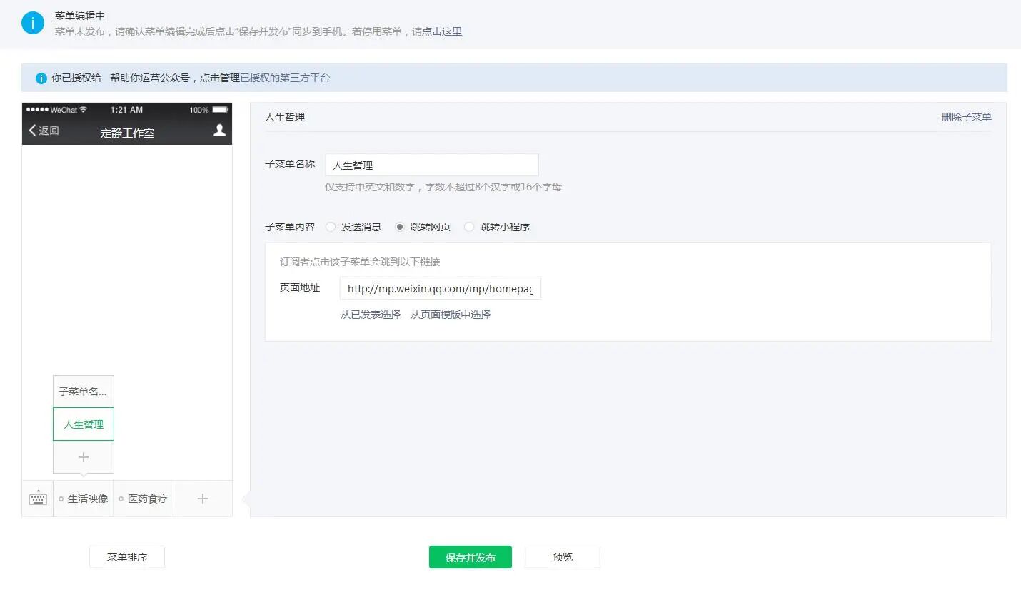 在公众号后台操作修改自定义菜单时,页面提示什么?