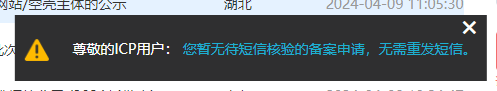 我是小程序主体负责人,在通过备案初审之后,一直收不到管局的短信验证,每天都会被驳回,然后点击提交,也收不到短信。现在已知手机号码是正常的,可以收到其他的短信,备案显示那里如图:。在ICP/IP官网上的短信重发那里,输入手机号码和身份证后六位,显示如图:。请问有人知道,这个应该要怎么做吗?