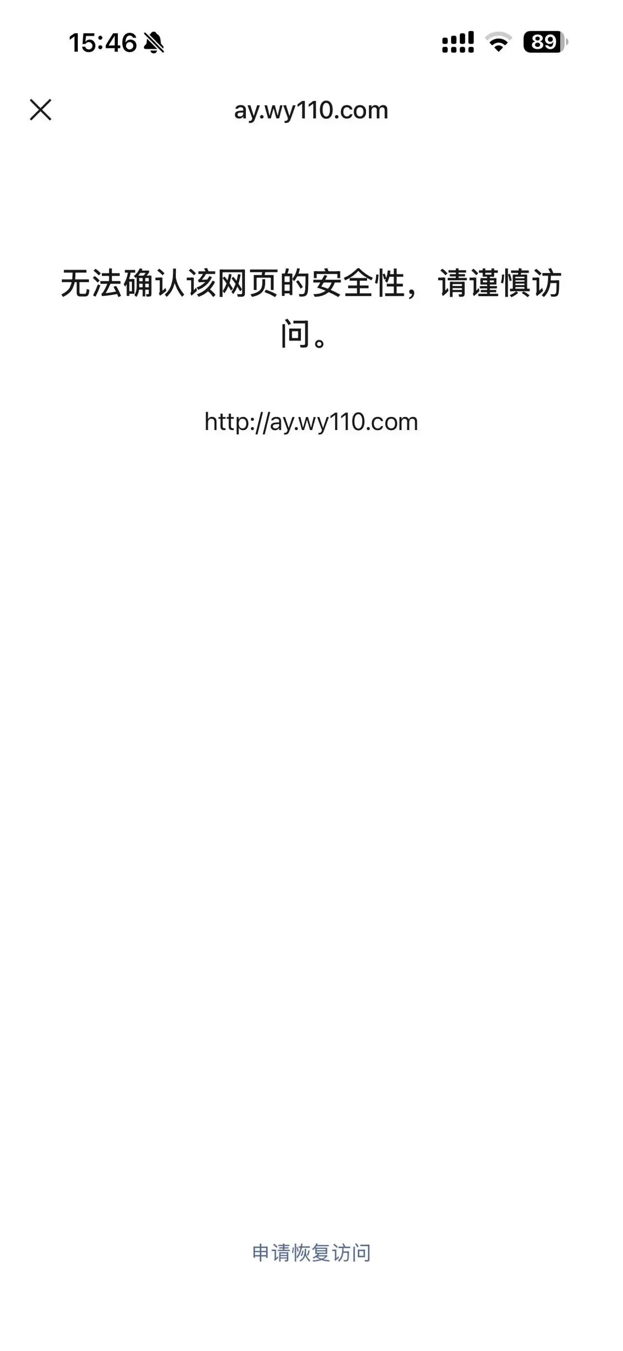 微信访问网站受限?ay.wy110.com 该网站域名已备案,该网站是个人网站测试站无任何违法以及不良行为,麻烦审核员审核一下谢谢了