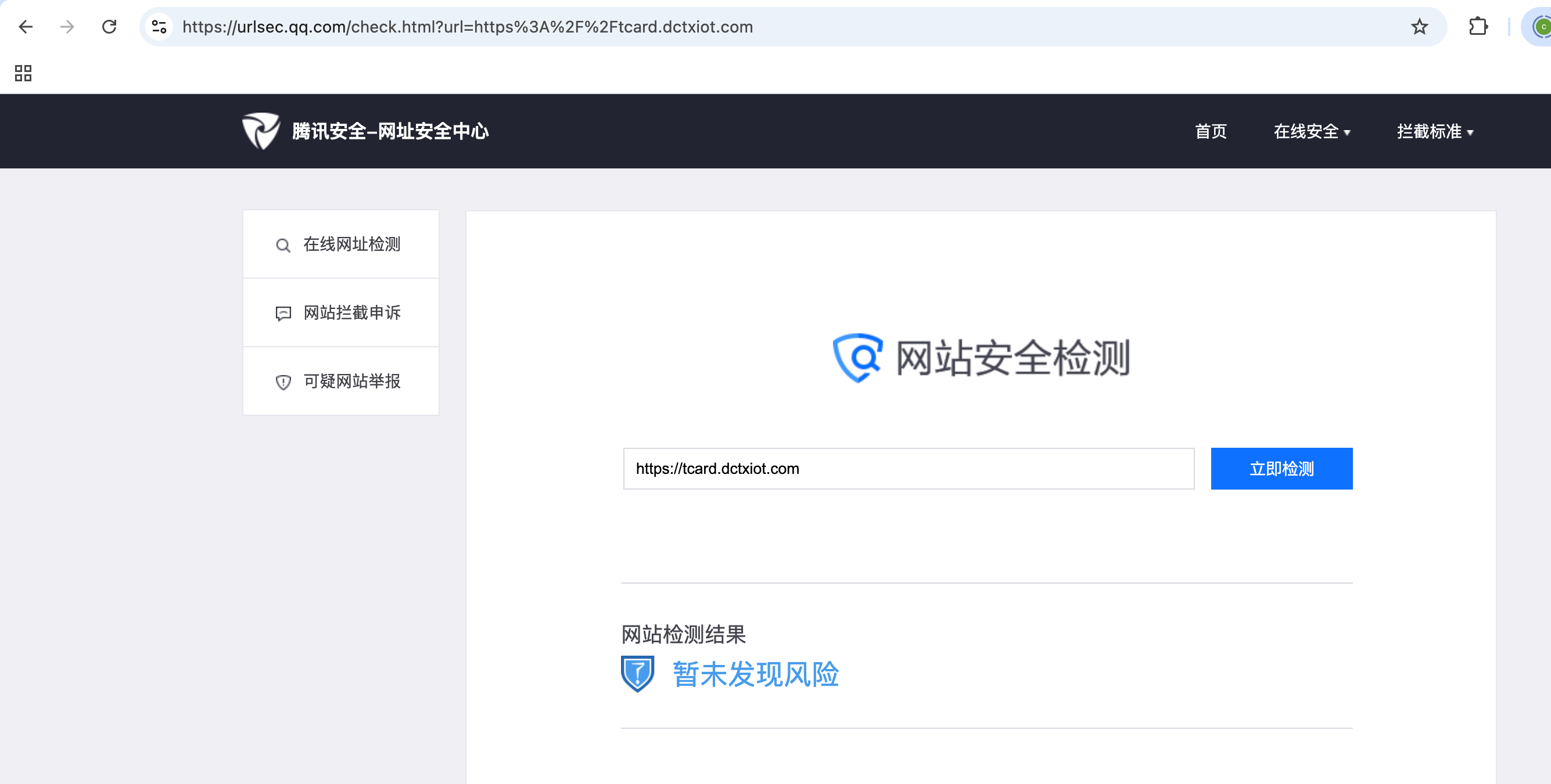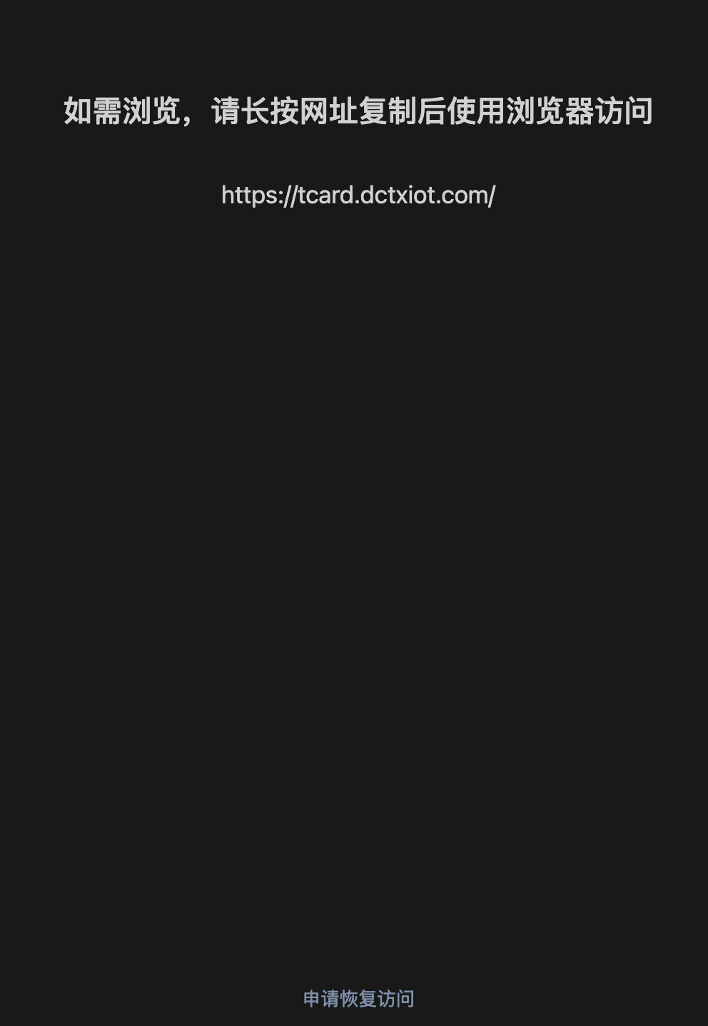https://tcard.dctxiot.com/,域名并未违规,但是在微信内无法直接访问,需要能恢复直接访问