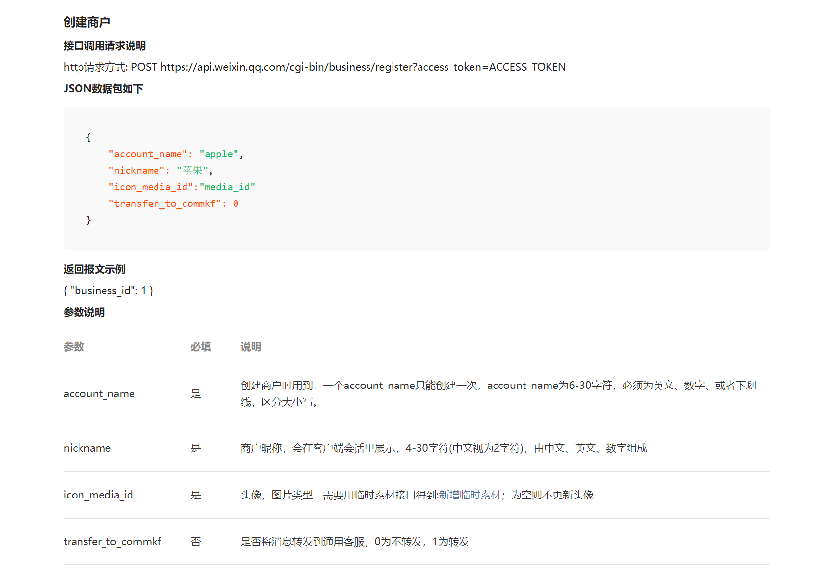 这个transfer_to_commkf = true 一定要用 true,不然 后面的 添加 子商户客服(customservice/kfaccount/add)的时候 就会报错