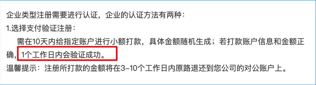 支付验证还没遇到过失败的情况,是不是填写金额错误了?银行对公打款1个工作日肯定到账了。