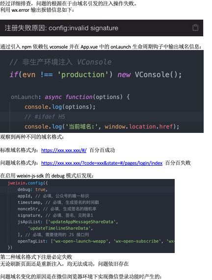 先说下我遇到这个问题的原因:在某种场景下微信JsSdk注入失败,这个问题困扰了我们好久,现在把解决方案贴出来供大家参考。本来自己解决了可以不管的,但因为自己淋过雨,所以想给别人撑把伞。