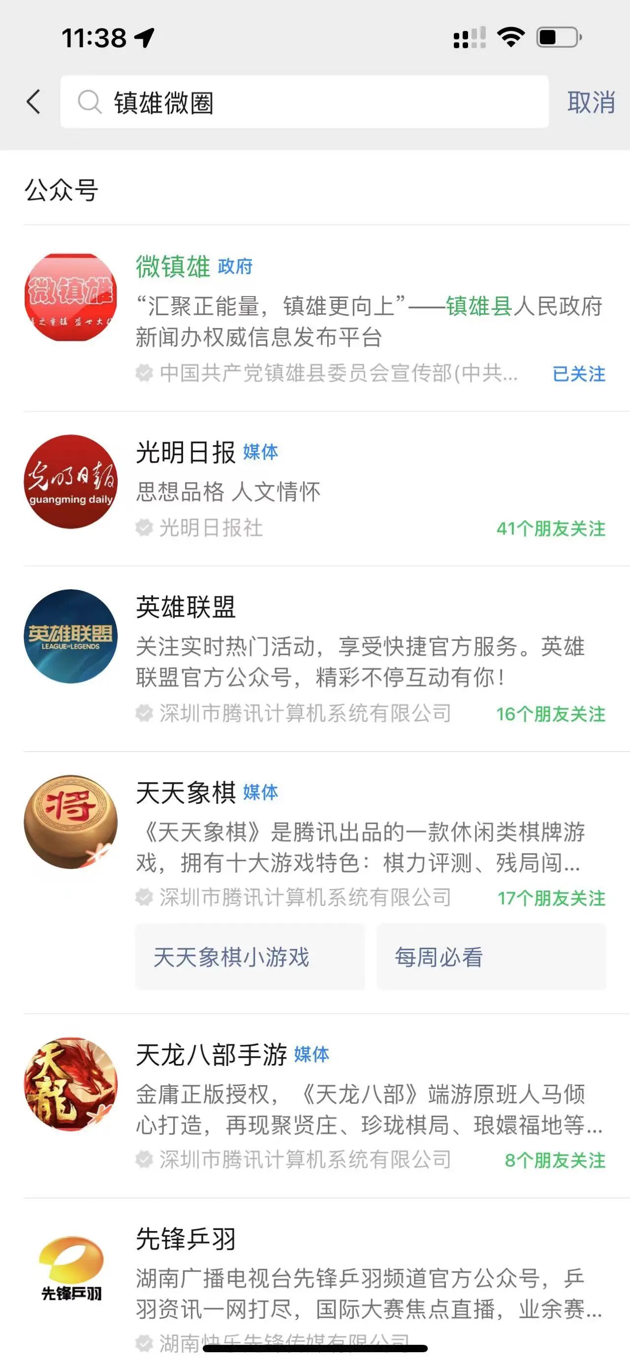 我的公众号叫镇雄微圈,最近用户不能再微信里搜到,在搜一搜里也不能搜到,没有提示违规,后台也没有禁止搜索,请大神们帮我看看,急,在线等