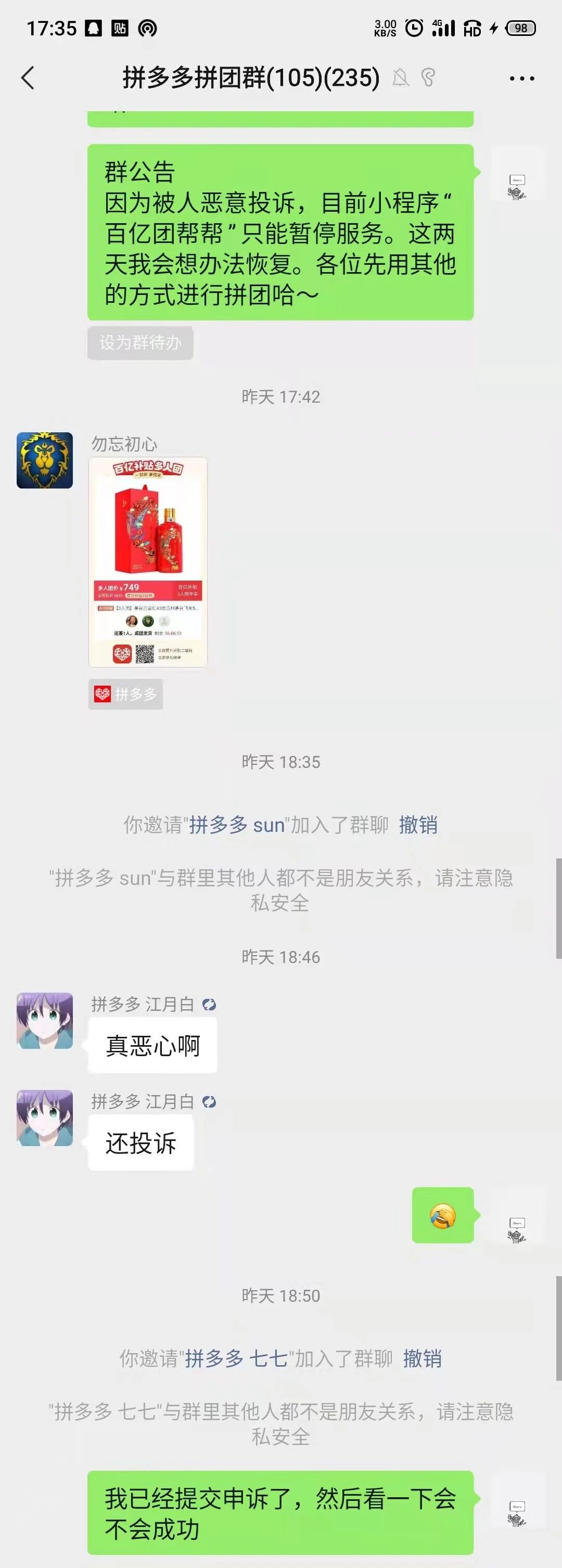 1、说我们的小程序没有实质性的服务,我也发送了我们用户群的诉求截图,是因为用户数量不够所以服务不够实质性吗?