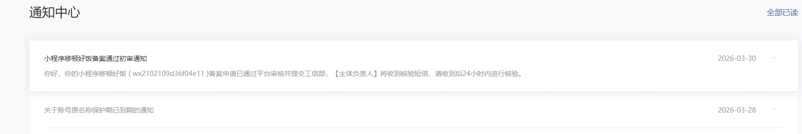个人的小程序备案,小程序备案这里提示已经是,3月330号已经是管局审核中,提示24小时候会收到验证短信。截止到现在还没有收到短信