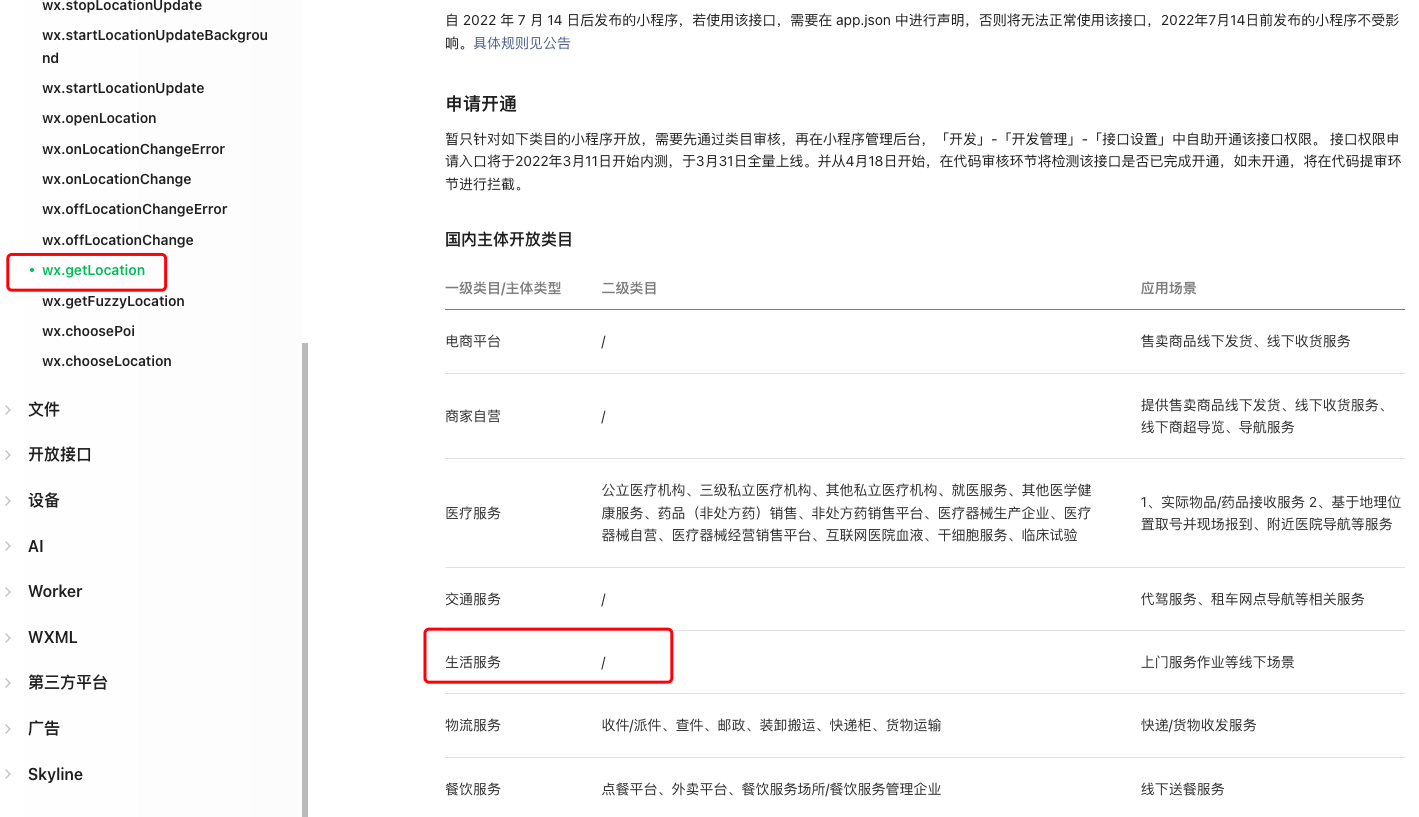 你好,经核实,wx.getLocation接口无权限的原因是由于小程序存在相关违规内容,具体违规内容请前往小程序mp管理后台站内信进行查看。整改完毕后通过小程序功能封禁站内信进行申诉。