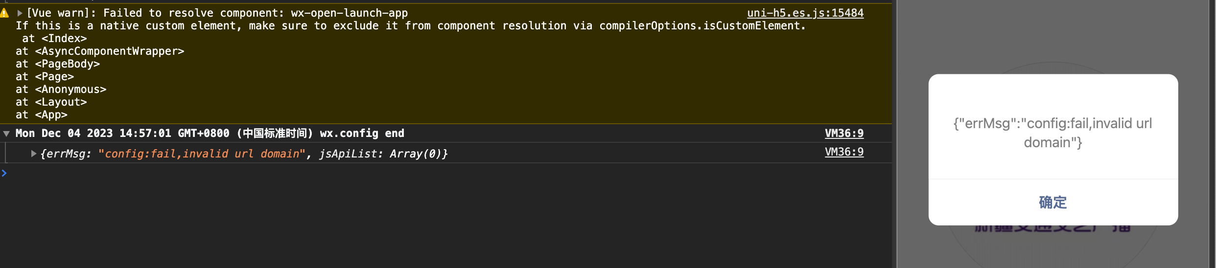 我用 uniapp 开发h5,通过使用测试账号使用jssdk的时候报错。
