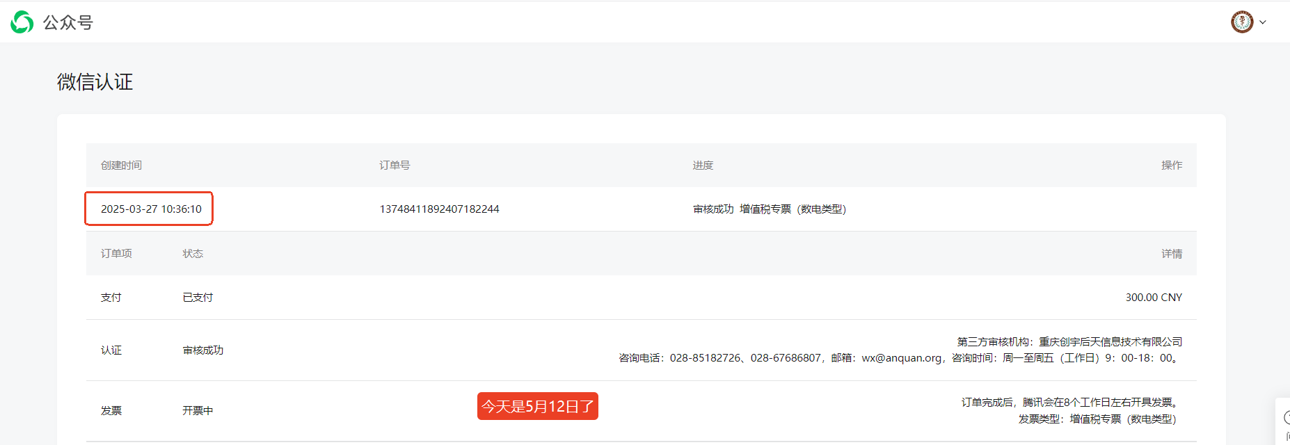 微信认证3月份就审核通过了,现在还在开票中,有没有人能解释一下