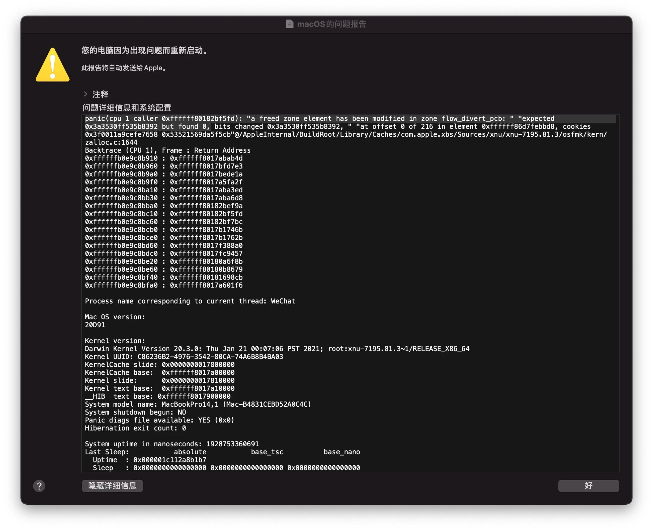 1.04.2011182今日闪退N次,适配M1的大型应用都大把出现了,咱不能被一个Big Sur给难住啊。。。