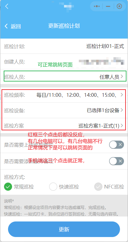 电脑端小程序内页面点击无反应,手机端正常,换另外一台电脑不同版本的微信却正常