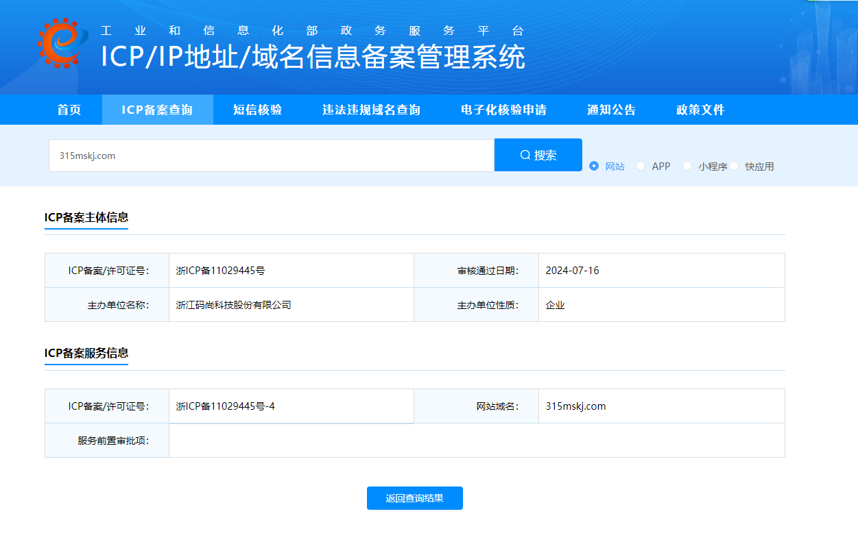 网站域名 315mskj.com域名,已完成备案(浙ICP备11029445号-4),不存在违规内容,请核实并解除限制。