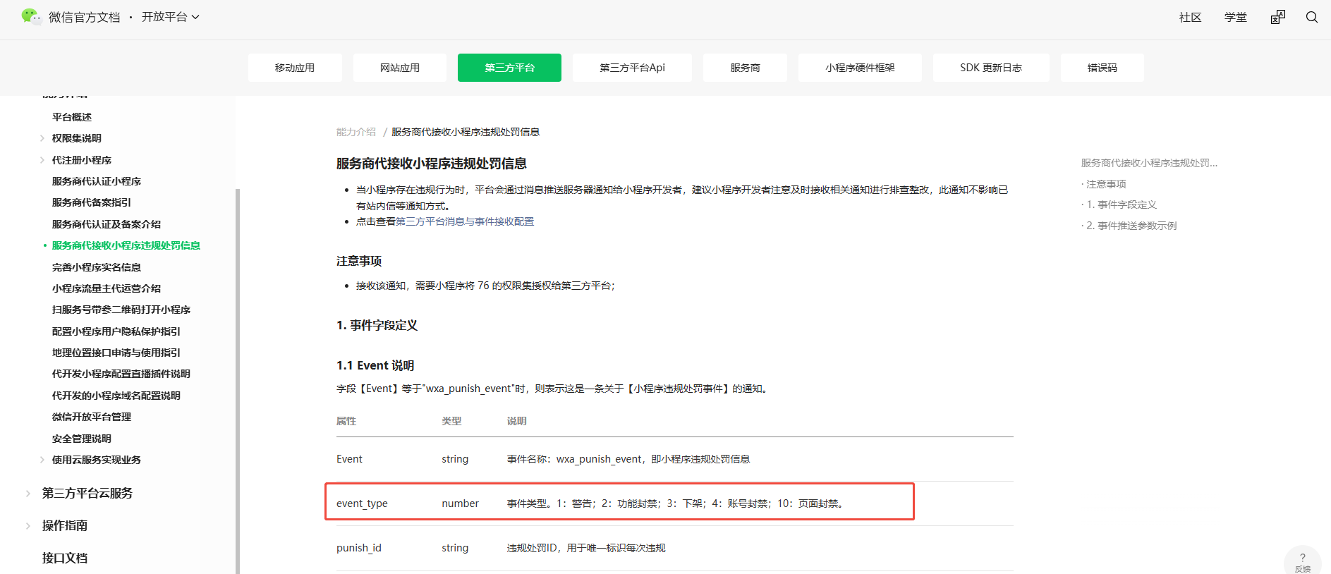 你好,授权76权限集后,若小程序有警告、功能封禁等也会正常推送事件给第三方平台,https://developers.weixin.qq.com/doc/oplatform/Third-party_Platforms/2.0/product/illegalEvent.html