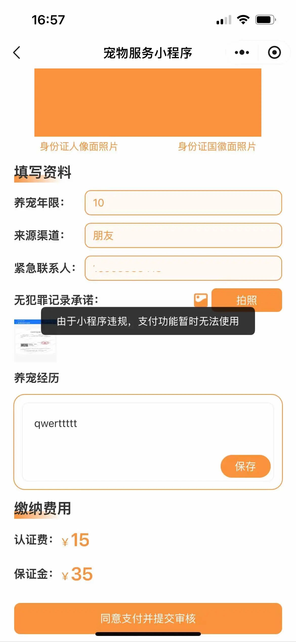 小程序未进行账期接入,请登陆小程序后台接入订单发货管理,通过后封禁将会解除(很多就是这个原因);如果没有订单管理,可以先用开发工具跑完支付流程或者提交审核小程序,发布后获取订单管理。用开发工具支付期间如果小程序账期接入也会恢复正常,一般一个工作日就解除封禁了
