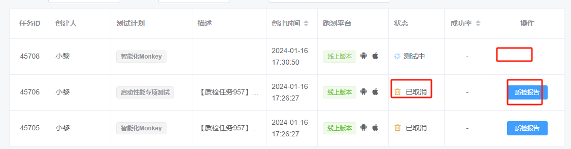 2. 关于任务取消的问题,逻辑是在测试开始后的1分钟-5分钟内都可以取消的。主要是因为云测是真机跑测的,每次测试都实实在在占用机器资源测试,如果可以无限取消,那机器资源会被无效消耗殆尽