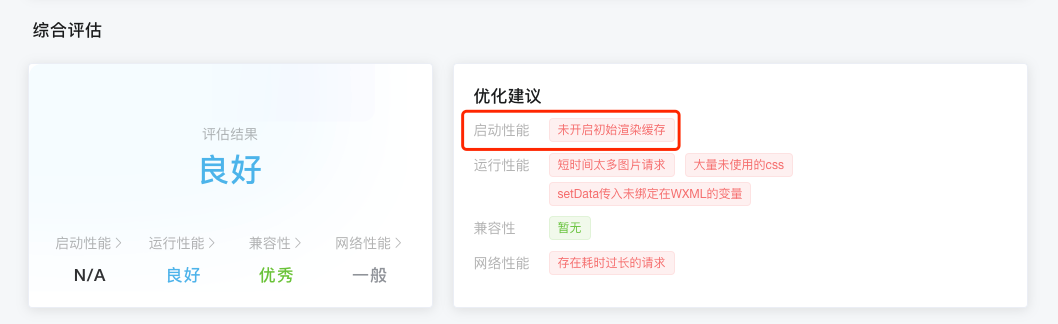 4、启动性能分析报表中,希望可以直观的告诉开发者性能优化建议(比如分包加载时间过长,主包资源过大,子包应该怎样合理加载)。