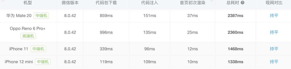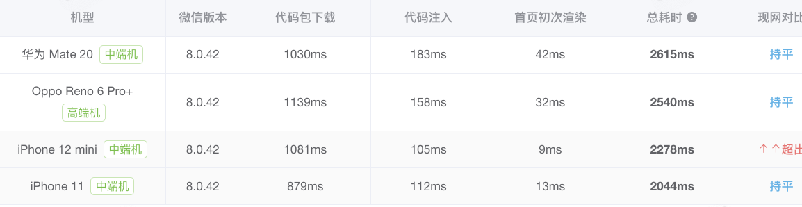 3、多份相同设备的性能分析报告中,分包和资源加载时间相差较多,不能更好的体现到底应该如何去优化性能