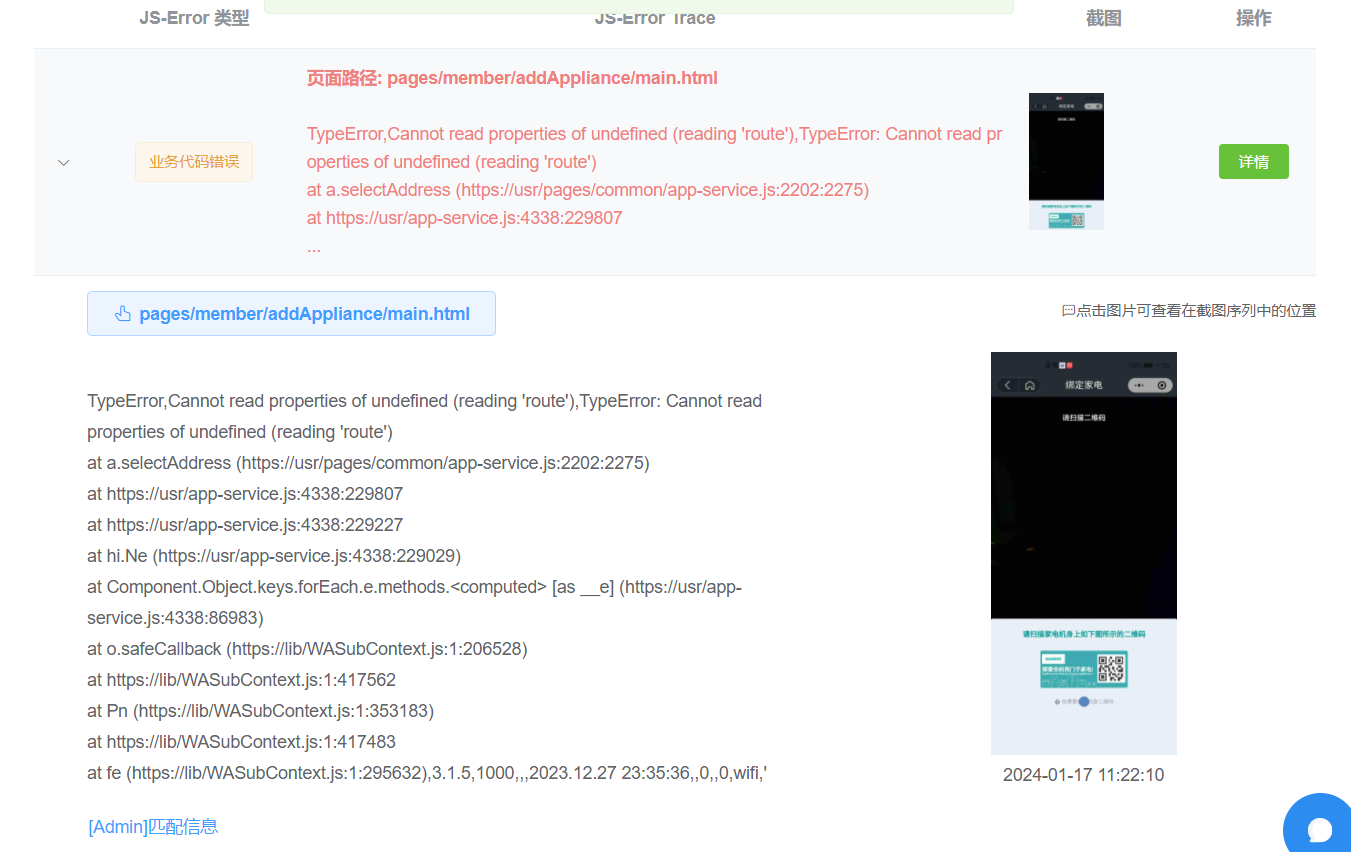1. 在测试过程中,我发现云测多次进入了某一页面,在这个过程中偶尔会出现 this.getOpenerEventChannel() 为 undefined 的问题。不清楚是否与云测环境有关,因为项目代码中进入这个页面的入口只有一个,而且在We分析的JS分析中没有出现此类错误。