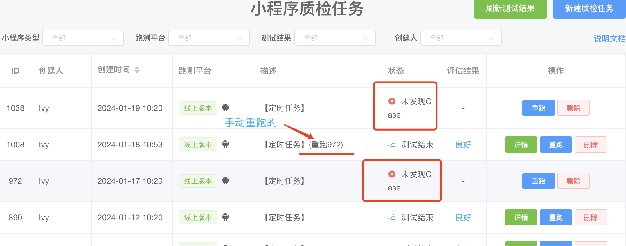 整体的感受: 从最开始没有质检功能到现在的质检上线, 从开始简单的质检到后续的数据的丰富,定时任务的增加,跑测脚本类型的增加,问题反馈后的及时修复,整体上看到了一个可靠的团队在一直优化和提升,给了我们继续使用的信心。