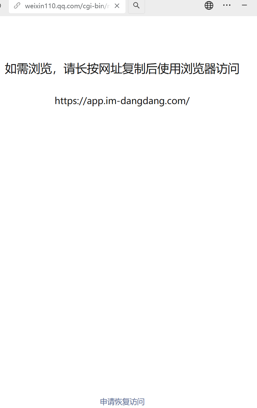 微信网页下方的“申请恢复”已经申请了多个工作日,但是依然没有解除访问限制,希望管理员帮忙查看问题原因,提供解决方案。@社区技术运营