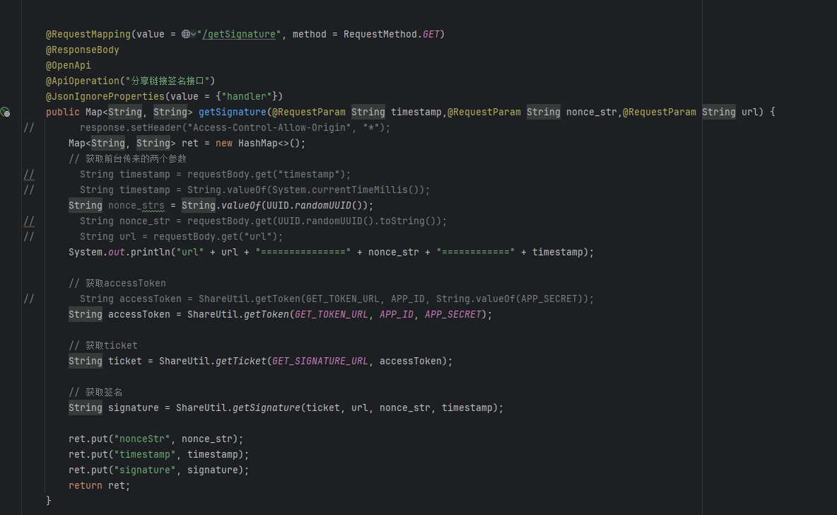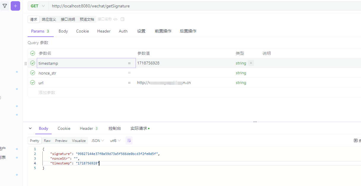 微信分享签名后端生成的,但是前端一直说不对,我看了一下断点没有啥报错信息。白名单也添加了,但是就是签名给前端前端说不对,前端传的参数有:timestamp