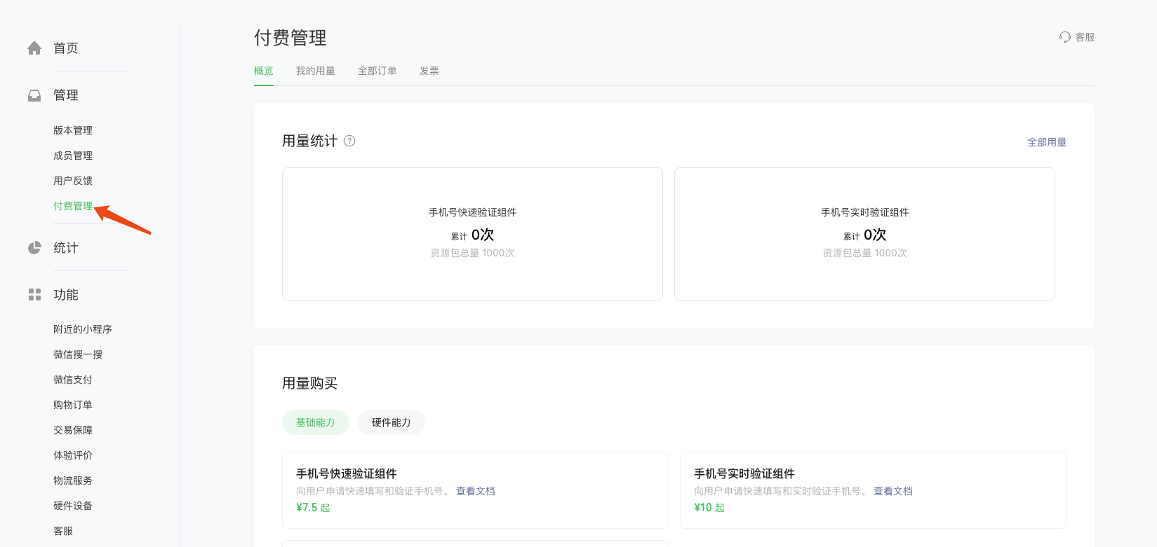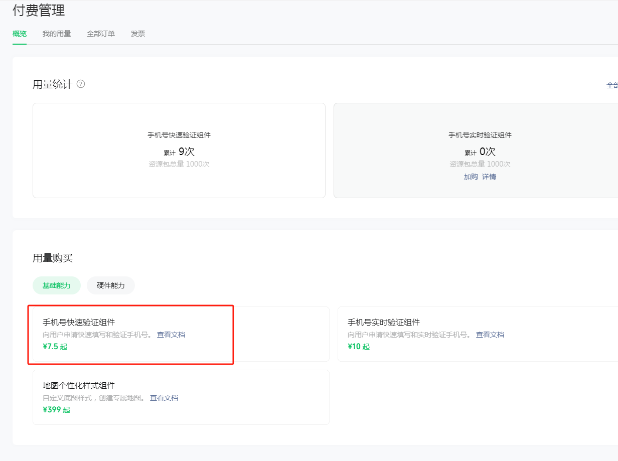 小程序的手机号码验证需要收费,但是在公众平台上找不到哪里可以充值的