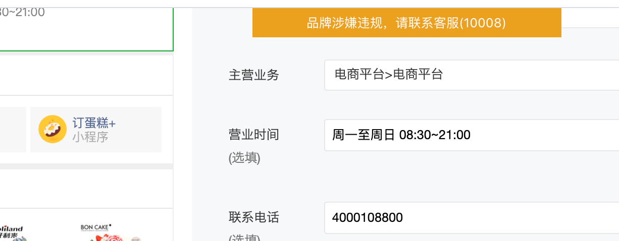 请问在编辑公众号搜一搜“品牌主页”时提交审核显示‘品牌涉嫌违规,请联系客服(10008)’是为什么?