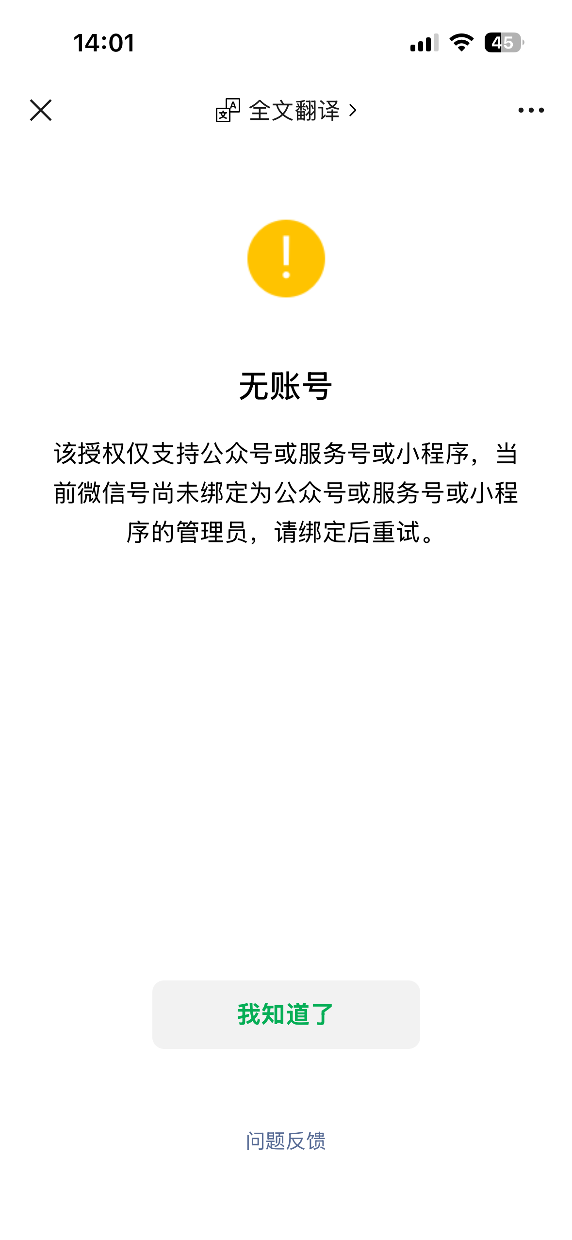 你好,请参考 https://developers.weixin.qq.com/doc/oplatform/Third-party_Platforms/2.0/troubleshooting/authorization_troubleshooting.html#%E4%BA%94%E3%80%81%E5%95%86%E5%AE%B6%E6%8E%88%E6%9D%83%E6%8F%90%E7%A4%BA%E6%97%A0%E6%B3%95%E6%8E%88%E6%9D%83%E3%80%81%E6%97%A0%E8%B4%A6%E5%8F%B7 自查。如确认当前扫码者是公众账号管理员身份,提供完整录屏资料(从显示微信号页面开始录制-->去公众号【公众平台安全助手】查看你名下作为管理员的账号-->再操作扫码授权)