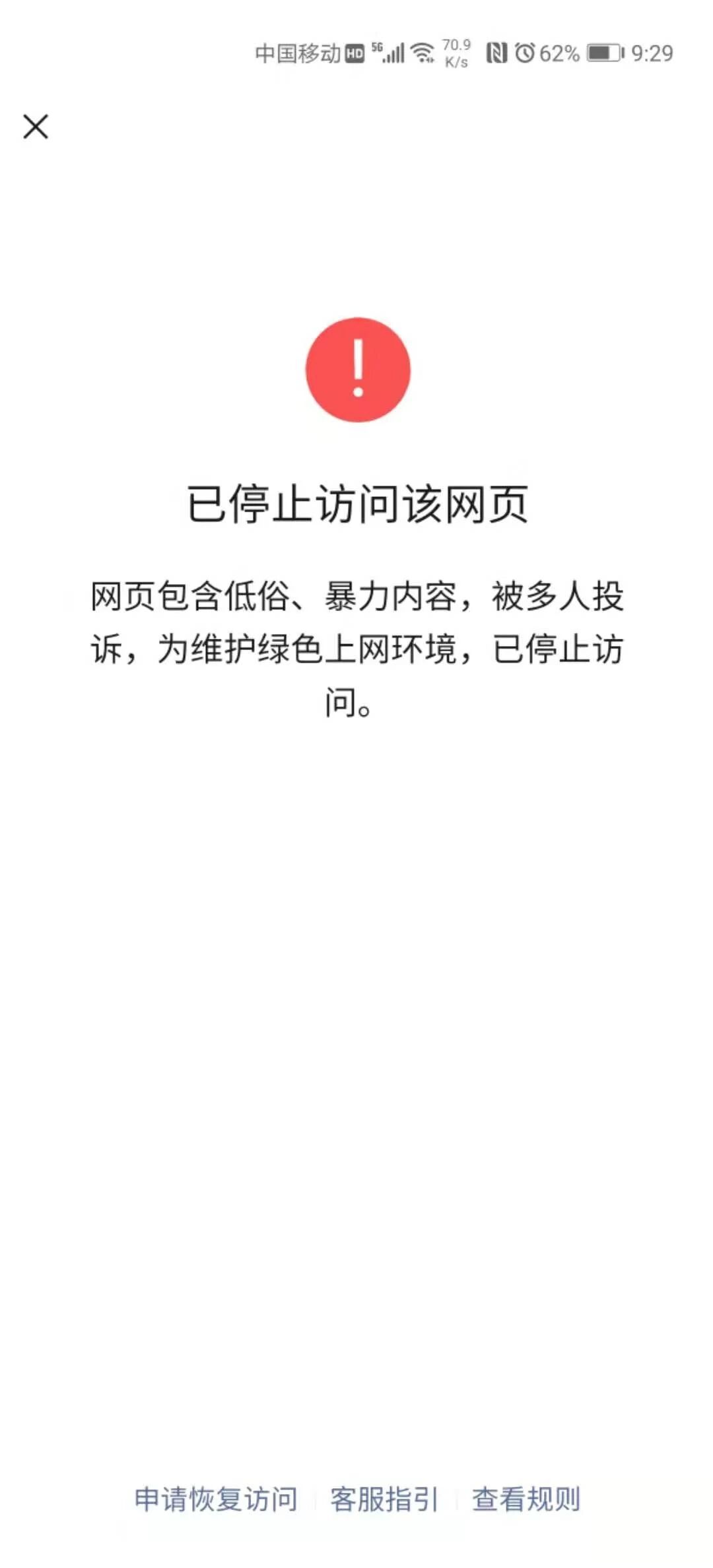 我最近刚申请好的域名,微信内打开显示含有低俗暴力内容。该网站只是正常资讯分享啊,没有这些不良内容。