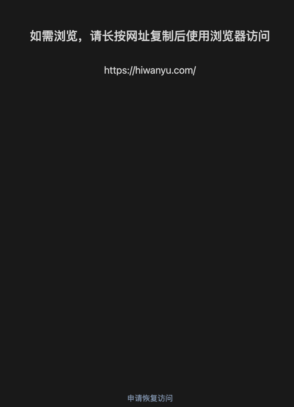https://hiwanyu.com/,域名并未违规,但在微信内被拦截无法直接访问,需要能恢复直接访问