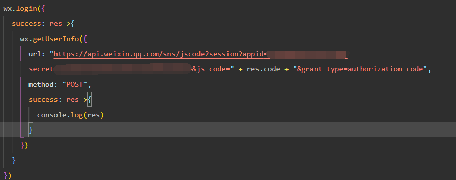 // 操作枷锁 --> 避免用户频繁操作限制 let shackles:boolean = true Page({ data: { code: '', }, onLoad() { this.getWxLogin() }, getWxLogin() { wx.login({ success: res => { this.setData({ code: res.code }) } }) }, wxGetUserProFile() { if(!shackles) return shackles = false wx.getUserProfile({ lang: 'zh_CN', desc: '用于登陆小程序', success: (res) => { //授权成功 requestLogin(res.userInfo) }, fail: (err) => { //授权失败 }, complete: (fulfil) => { shackles = true } }) }, requestLogin(userInfo) { console.log('code --->',this.data.code) console.log('userInfo --->',userInfo) //登陆失败等操作重新调一次getWxLogin } })通过wx.login 获取code 后台换session_key https://developers.weixin.qq.com/miniprogram/dev/api-backend/open-api/login/auth.code2Session.html