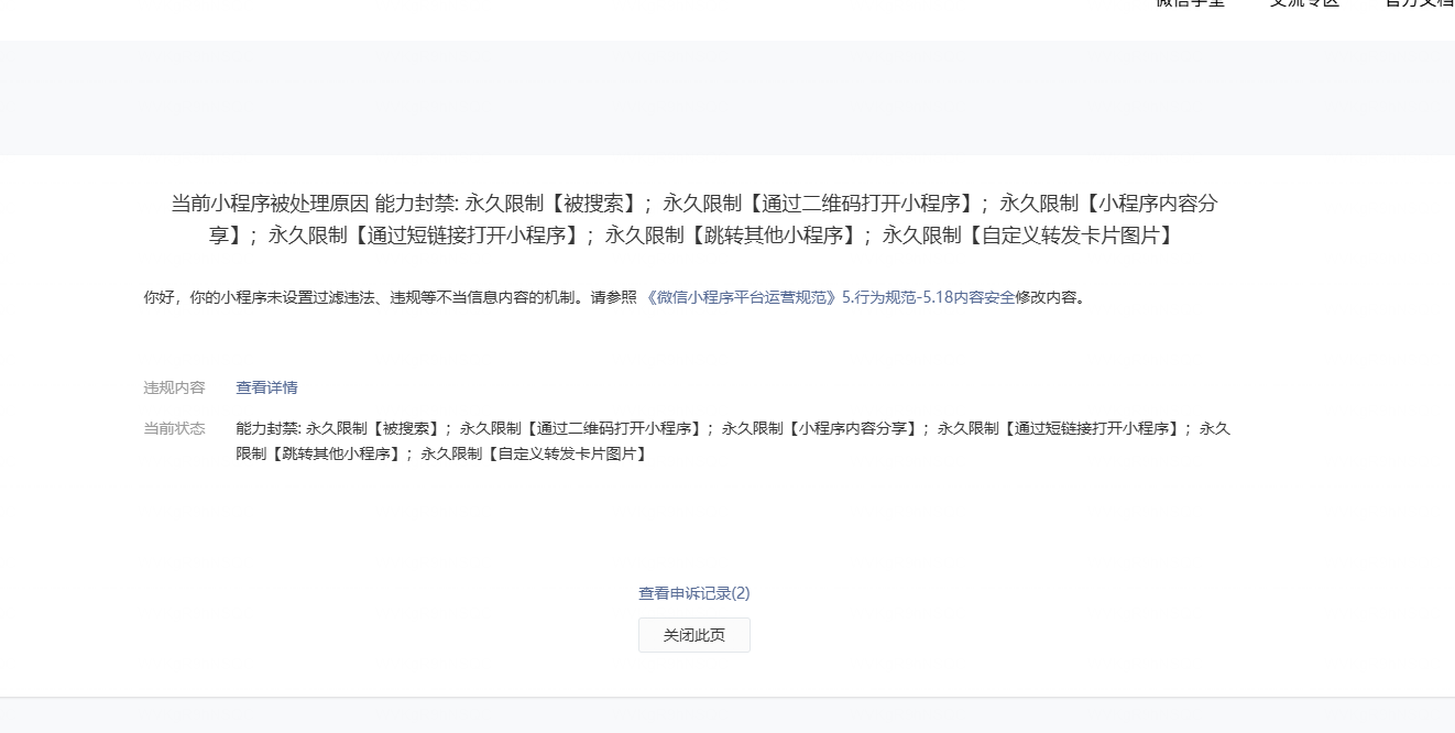 小程序原始id:gh_69ac441c0b79 因为小程序之前未及时接入安全过滤功能,整改申诉两次也没有通过导致搜索功能被永封 账号近期被重新找回,请问怎么申诉解封,联系官方电话也没有用