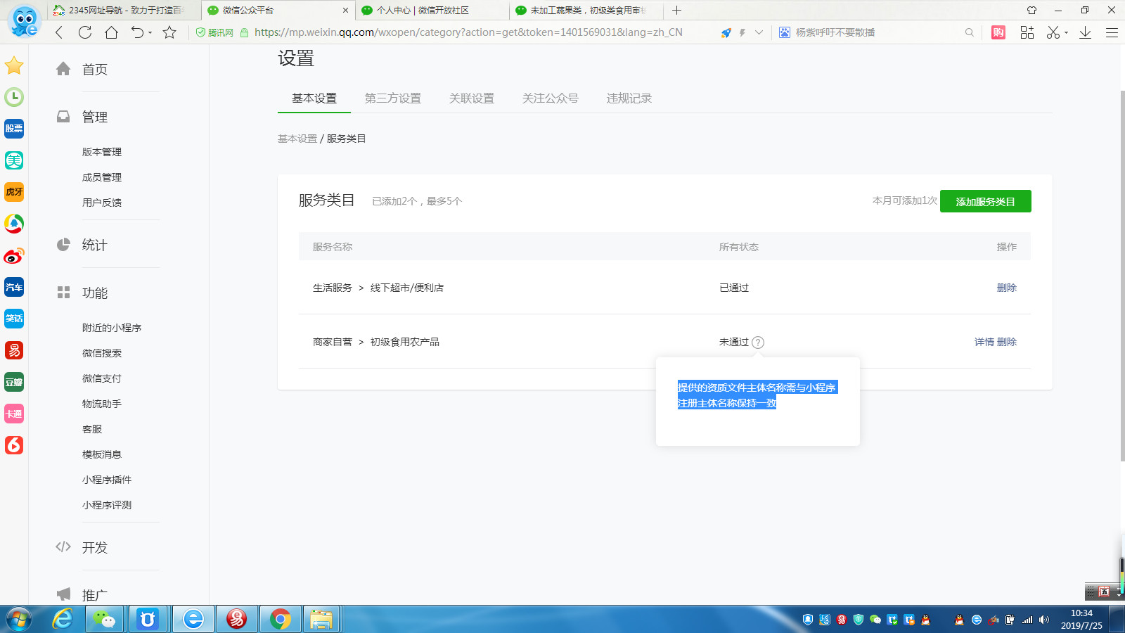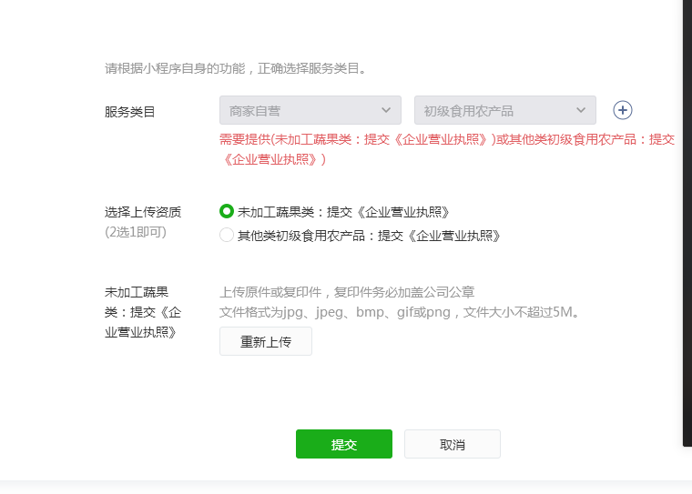 我一直纳闷啊!我之前提交小程序版本通过发布了。后面计划投广告主。有分销广告主那边不让过。就改了小程序。等小程序改好,广告主通过了。小程序既然发布不了。现在说要提交一个(未加工蔬果:提交企业营业执照)。到工商局问,工商局的同志说,有食用农产品,及水果,包含未加工疏果类,跟工商局的同志求情,就是加几字,工商局的发火,你这不是多此一举吗?停线了几天了。工商局也跑了,也多次提交审核了。就是不通过。工商局同志不让加。这样让我怎么操作呢,麻烦审核的同志给予通过。