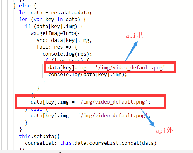 然后在wx.getImageInfo外data[key].img能正常赋值请问这是为什么?