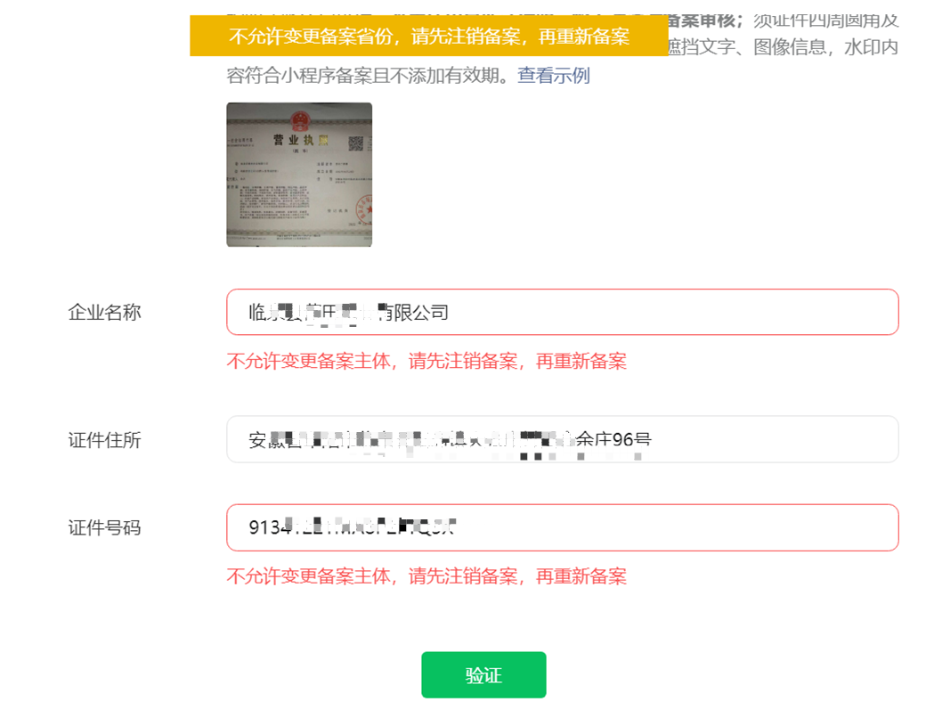 备案不支持变更省份,只支持省内地区变更;你这种只能点击注销备案,然后用新的主体重新备案