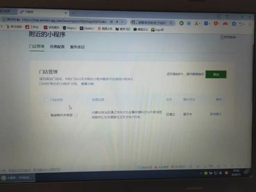 附近的小程序已经开启微信端没有展示。