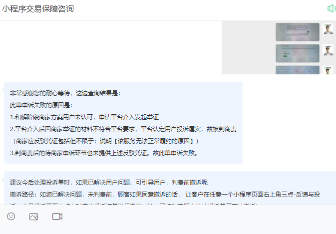 移动端工作台:微信主页搜索「小程序助手」—登陆小程序—管理功能—交易投诉