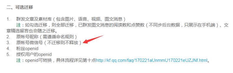 2. 公众号微信号如果不勾选迁移,那么不会释放,其它帐号就使用不了