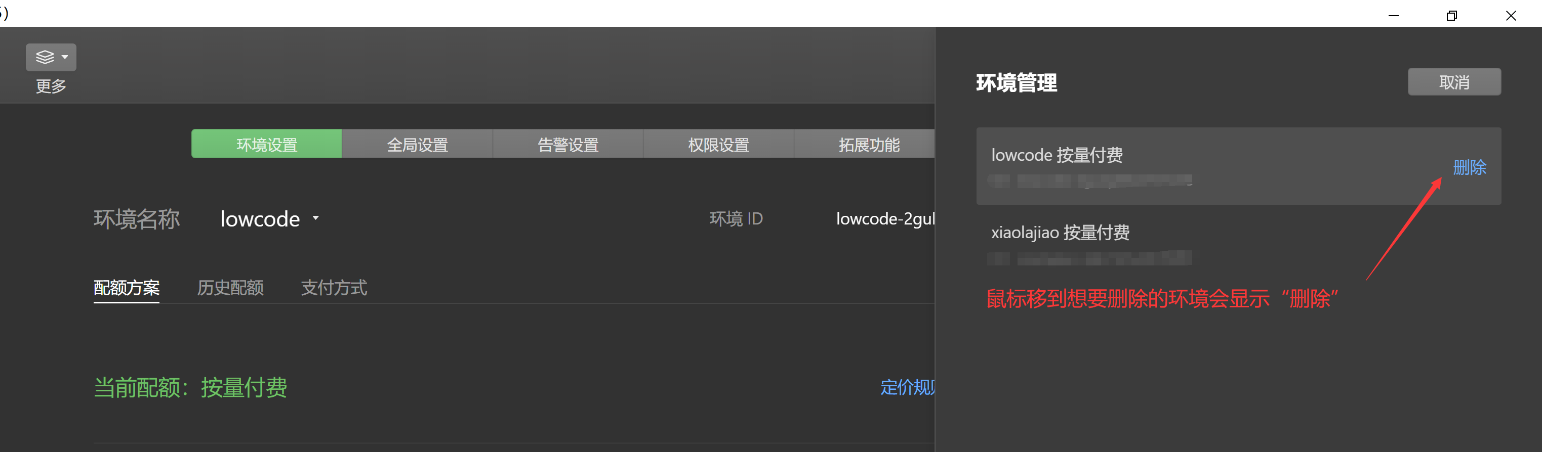 你好,可以删除环境,管理我的环境,右边会有删除入口。