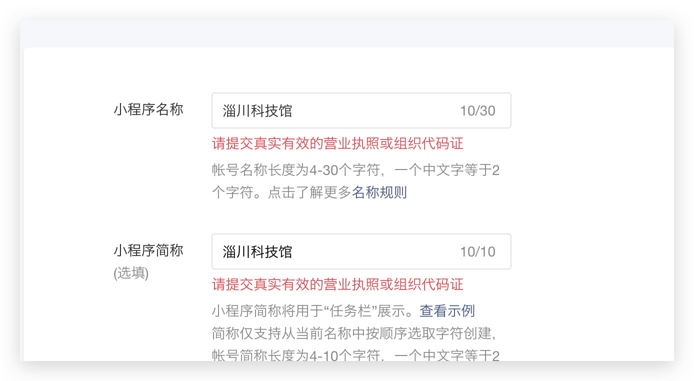 我现在想申请一个小程序(淄川区科技馆),但是该馆没有独立的法人什么的,他是隶属于淄川区科学技术协会,我有科协相关的统一代码,和科技馆的人名文件,请问该怎么认证呢