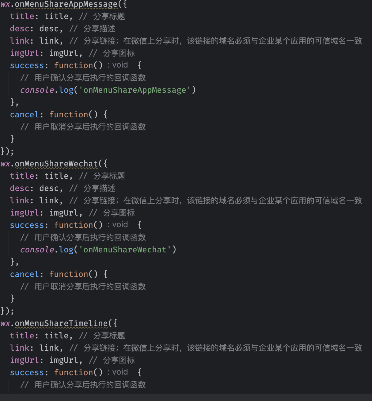 关于分享操作的相关代码未进行变更,以前是有的,现在没有啦,是JS-SDK进行了什么变动么?相关代码截图如下: