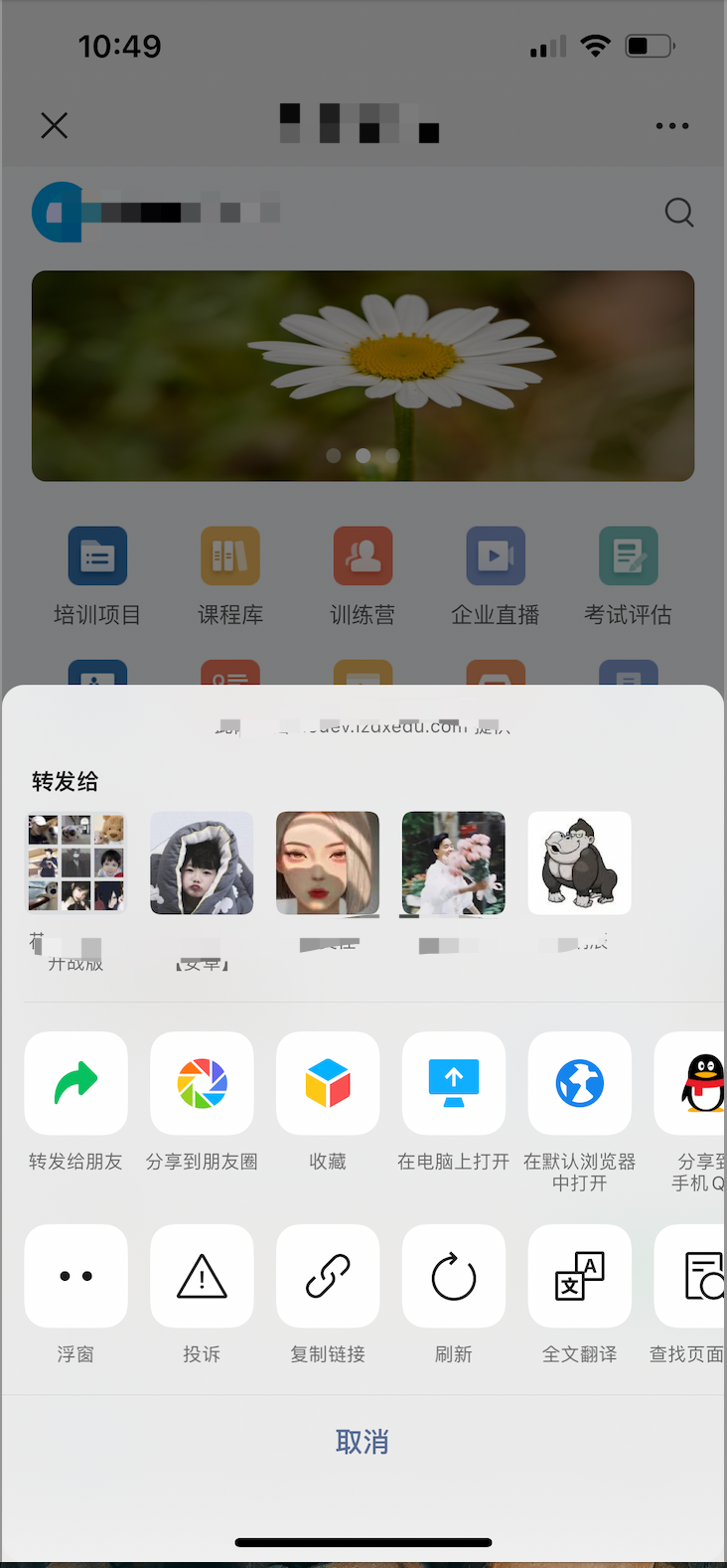 2、需要进行分享操作,调用API的方式,该页面右上角点击后,分享相关按钮消失