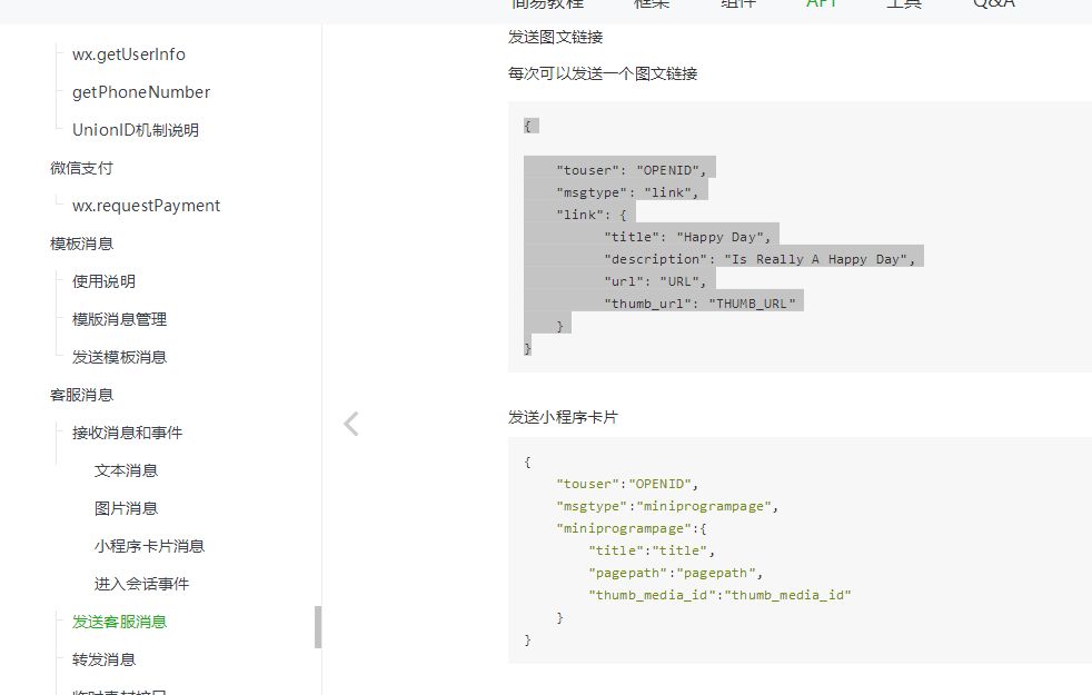 可以在后台配置响应链接地址,然后参考小程序【发送客服消息】![]()